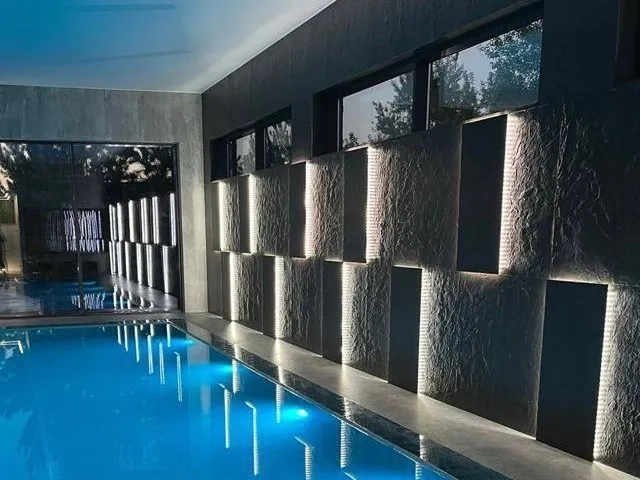 На фото примеры применения гибкой керамики при отделке стен в различных помещениях (жилые комнаты в квартирах, бассейн на даче, ванные комнаты, лоджии и балконы, офисные комнаты и другого назначения помещения).